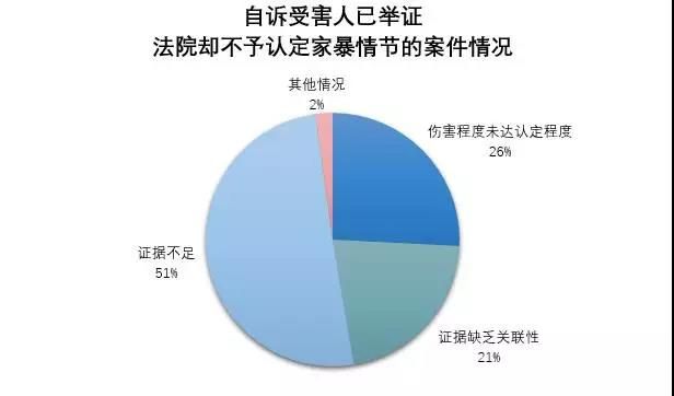 此外,由于大部分自诉受害人缺乏遭受家庭暴力后的权益保护意识,证据意识以及证据保全能力低下,在自诉受害人未能就其主张向法院充分举证的情况下,自诉受害人的诉求很难得到法院的支持。