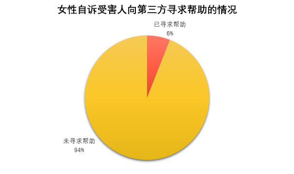 在701件自诉受害人为女性的涉家暴离婚案件中,仅6%的女性自诉受害人曾向第三方寻求帮助。