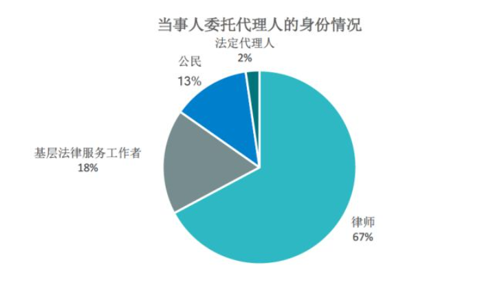 在129件申请人/被申请人委托了代理人的案件中,67%的当事人委托了律师作为代理人。此外,申请人/被申请人委托基层法律服务工作者的案件占比18%,而申请人/被申请人委托普通公民作为代理人的案件占比13%。在该129件案件中,仅4名申请人寻求了法律援助。