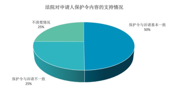 (一)50%的案件中,法院出具的裁定与申请人诉请的保护令内容基本一致。