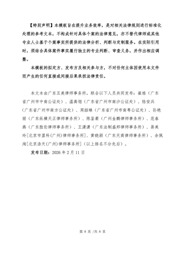 本模板的拟定方、发布方及相关参与方,不对任何主体因使用本文件而产生的任何直接或间接后果承担法律责任。