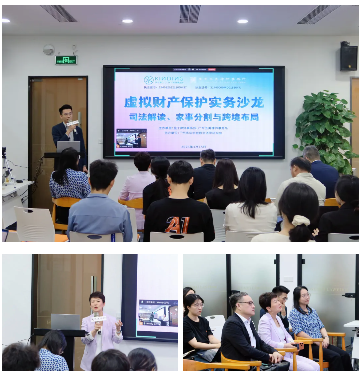 2026年4月15日下午,由垦丁律师事务所、广东五美律师事务所联合主办,广州市法学会数字法学研究会协办的“虚拟财产保护实务沙龙”在广东五美律师事务所成功举办。本次沙龙以“司法解读、家事分割与跨境布局”为主题,汇聚行业专家、律师、学者及企业家,围绕虚拟财产领域的前沿法律问题展开深入研讨,为数字经济时代虚拟财产权益保护提供了专业思路与实践指引。