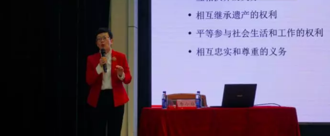 李小非律师借助其丰富的办案经验,采用以案说法的方式为在座学院解读了我国《婚姻法》的基本法律知识,并讲解了由广东省高级人民法院出台的《广东法院审理离婚案件程序指引》的运用技巧。