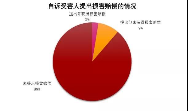 此外,自诉受害人向法院提出损害赔偿的比例也相对较低,仅为11%。