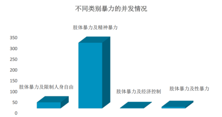 四、家庭暴力的类型以肢体暴力为主,肢体暴力与精神暴力的并发程度最高