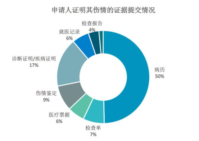 (三)申请人提交的证明伤情的证据中,医院病历的占比最高。