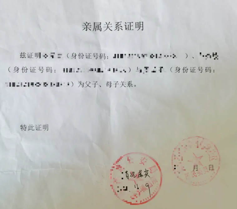 【注意】派出所能够查询的是,与被查询人在同一户籍的亲属关系证明,例如被查询人户籍在A地时,儿子、女儿、丈夫都在同一户,则该派出所可出具被查询人与丈夫、儿子、女儿的亲属关系证明;但若被查询人户籍在A地时,只有儿子同一户,则该派出所只会出具被查询人与儿子的亲属关系证明。