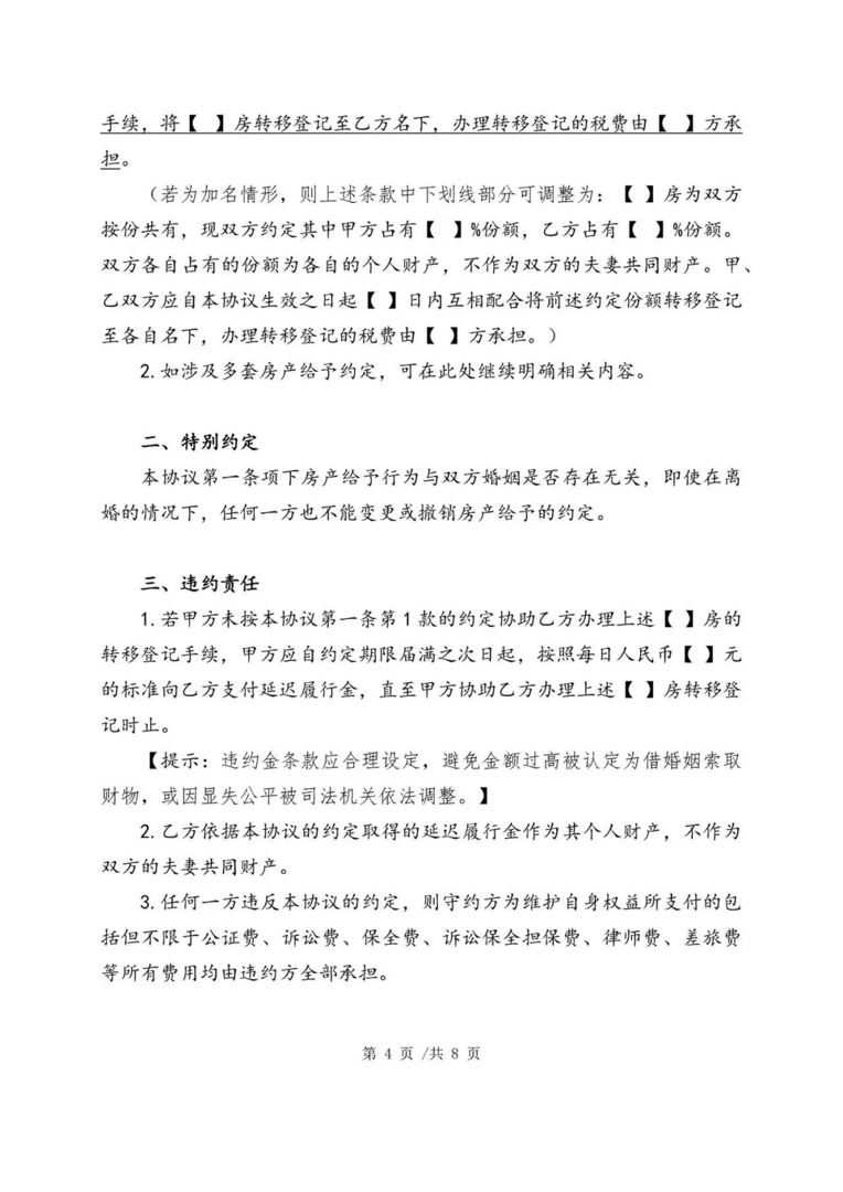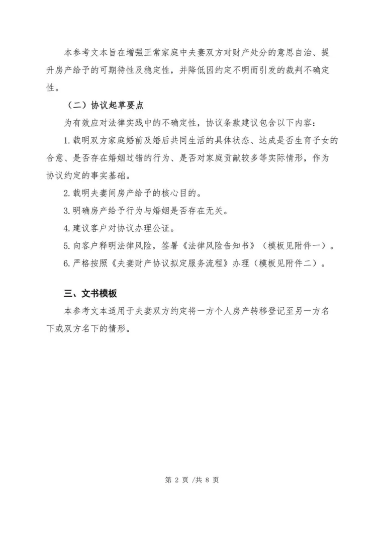 本参考文本系基于夫妻间房产给予相关司法解释的适用背景、裁判逻辑与现实争议的基础,聚焦解决《解释(二)》第五条带来的裁判不确定性问题,帮助婚姻当事人清晰理解房产赠与、加名、过户的法律边界与风险,强化夫妻财产约定的意思自治效力,提升房产处分行为的可预期性与稳定性,降低离婚时房产分割纠纷的发生概率与诉讼风险,对个人权益保障、家庭财产规划均具有积极且重要的实务指导意义。